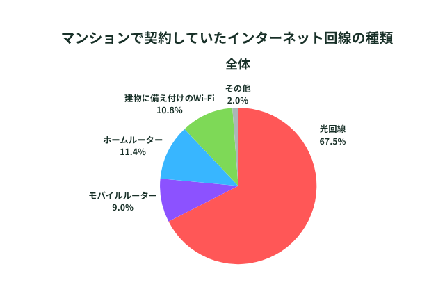 約70%の方が光回線を利用しており、モバイルルーターやホームルーターを契約した方、建物に備え付けの無料Wi-Fiを利用している方がそれぞれ約10%ずつという分布になりました。