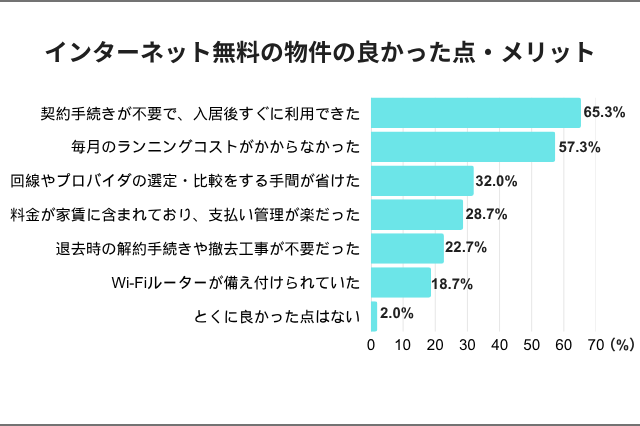 続いて、インターネット無料の賃貸物件に入居して良かった点・メリットについて質問しました。(複数回答)