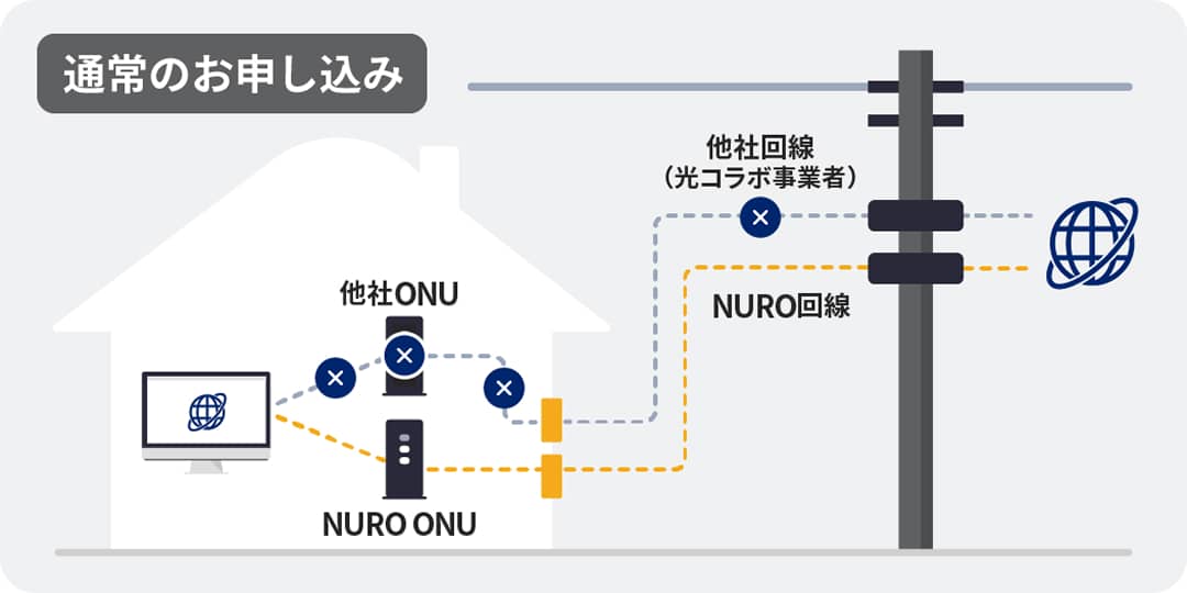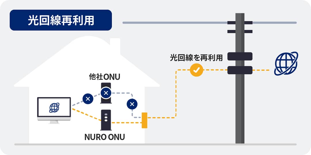 住宅設備の状況等によっては、光回線再利用をご利用いただけない場合があります。その場合、弊社よりNURO 光のお申し込み継続有無について確認のご連絡をさせていただきます。あらかじめご了承ください。