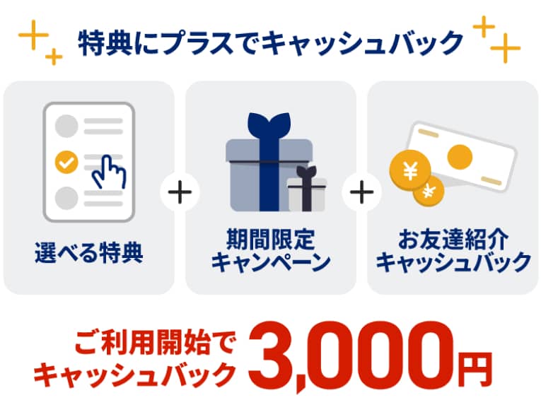 キャッシュバックの適用には各種条件があります。詳細は注意事項をご参照ください。