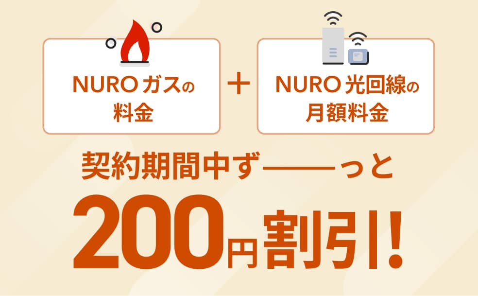 NURO 光 2ギガ、NURO 光 10ギガ、NURO 光 One 2ギガ、NURO 光 One 10ギガ、NURO 光 2ギガ(マンション)、NURO 光 10ギガ(マンション)とNURO ガスを同時にお申し込みされた方。