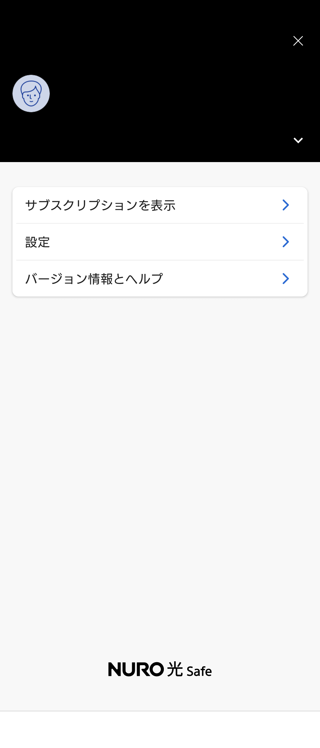 スマートフォンの画面のNURO 光 Safeのアイコンをタップして、NURO 光 Safeのメイン画面を表示します。