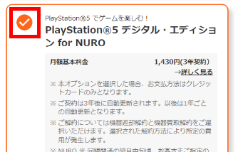 - 「Playstation®5 for NURO」の契約更新月となります。機器の購入・継続・返却をお選びください。