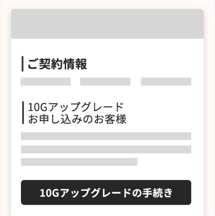 マイページの「ご契約情報」タブより「ご契約内容>10Gアップグレードの手続き」から判定に進み、お申し込みプランを選択します。