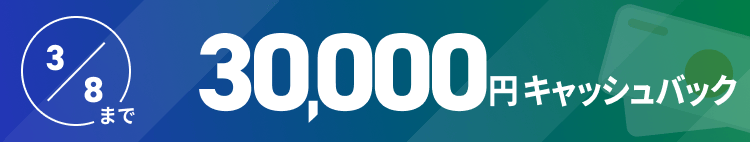 期間限定!30,000円キャッシュバックキャンペーン実施中3/8まで